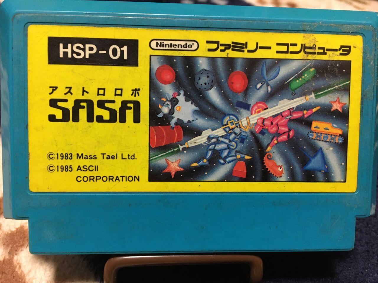 2021年03月19日 【ファミコン】アスキー「アストロロボSASA」 ファミコンのアクションゲーム SASAです。ゲームセンターでもいろいろなプラットフォームで出ているゲームですね。自機は噴射を利用して空を飛びながら動きます。噴射なので、行きたい方向とは逆に方向を向けて噴射移動します。なかなか慣れるまで時間がかかります。目的は風船を取ったり、この画面見たいに塔の上にあるEBOXに噴射を当てて消したりします。なんか不思議で慣れてくると意外と面白くなってきます。でも動きが反対なので、敵に突っ込んだりします。