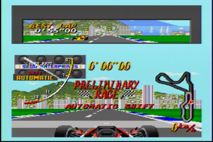 2020年09月15日 【メガドラ】セガ「モナコGP」 メガドラの有名レースゲーム「モナコグランプリ」です。パツキンのレースクイーンがタイトルにミッションの選択。面倒なんでいつもAT。3DタイプのF1レース。これでも当時はすごく綺麗だったです。アクセルワークがうまくいかず11位。トンネル部分もあります。ヘアピンカーブやらスピード感覚が無くそのまま突っ込む。当時は何度もプレーしてましたね。