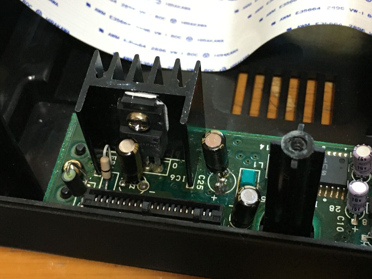 2021年03月01日 【メガドラ】HOFFで不動だったメガCD復活 先週HOFFで画面表示不可だったメガドラ+メガCDを修理してみました。値札では画面表示不可でジャンク扱いで1500円という扱いでした。あまり期待しませんでしたが、とりあえずメガドラからテストをしてみました。ソニックをさして電源ON!あれ?起動するじゃないですか!表示不可?メガドラ本体はどうもOKそうです。付属のコントローラーでゲームできるので、何も問題ありませんでした。それはそれでラッキー!問題のメガCDですが、メガCDの電源をさしてON!あれ!これも起動できるじゃないですか!肝心のトレーは開くか?トレーは開閉は出来るがすぐにCDが出てくる状態に。これは望みあるなと思いメガCDを分解清掃してみました。案の定レギュレーター部分の3個のコンデンサが液漏れ状態。これだけ交換しました。結局はグリスが乾いてヘッドの機構がうまく動作せず。古いグリスを拭き取り新しいグリスアップ。読込も怪しかったので、ピックアップも調整しました。シルフィードで動作試験をしてみます。おっ!動いた。でもこれから動くか?見事タイトル表示!少し手間がかかりましたが、見事1500円でメガCDが無事に動きました。